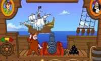 Choose a character between Peter Pan and Captain Hook. Hit the enemy ship 7 times to win the game. Click on the cannon to shoot. Click on the colors of the steering wheel to move. On your turn you can moove, shoot and move again. Your turn is over when the fuse reaches the barrel.